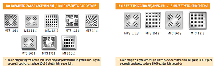 | MTS 2101 | 15×15 alttan çıkışlı kare fileli sistem Ø 50 |